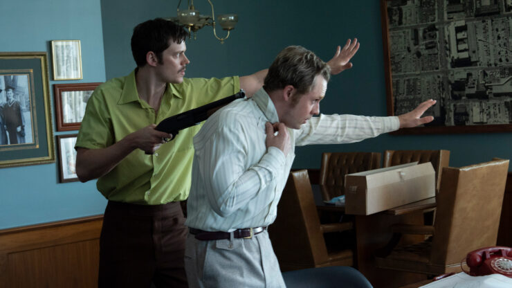 1977, Indianapolis. Tony Kiritsis (Bill Skarsgård) walks into a mortgage company with a loaded gun,…